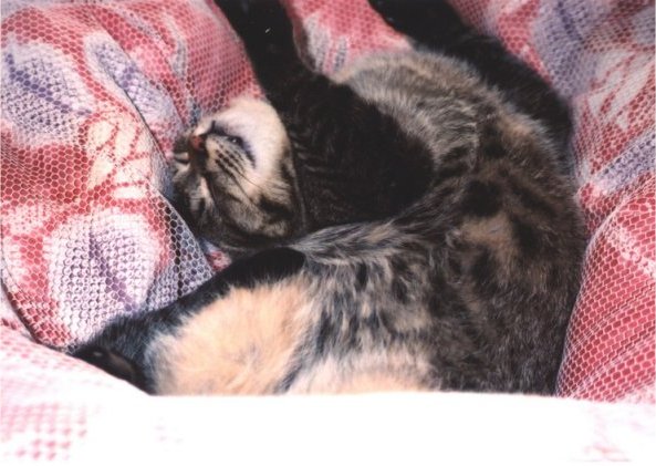 2002年??月??日 1歳くらいの時のものです。人間の歳にすると18〜20歳くらいではないでしょうか。 猫が寝ていると妙にいたずらしたくなるのは私だけでしょうか? |