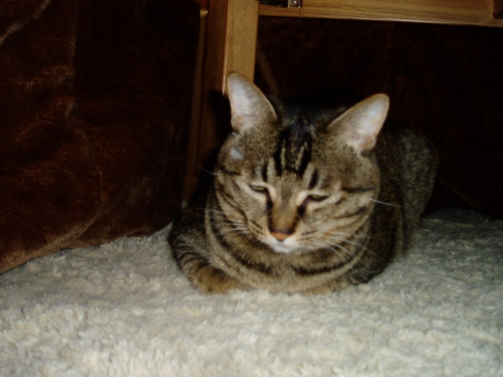 2005年2月22日 寒い寒い日に、コタツの中でとった写真です。 眠くてどうしようもない状態です。 |