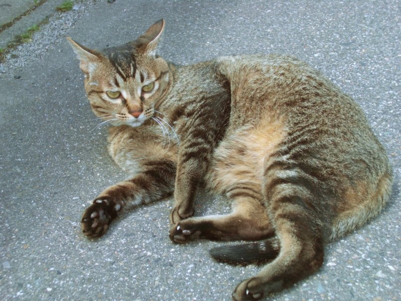 2005年4月24日撮影 最後になってしまった写真です。 晴天に恵まれ、家の前の道路でゴロゴロと体をこすっています。気持ちよさそ〜っ! |