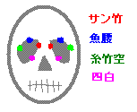 サン竹、魚腰、糸竹空、四白とツボの名前を書きましたが、ようは頭蓋骨の目が入っている穴です。この辺を押して刺激すると目の疲れにはいいらしいです。目が疲れたときに、「サン竹」はよく親指と人差指で摘みますよね!